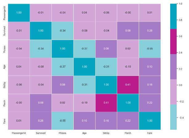 sns.heatmap(train.corr(), annot =True, linewidth =".5", fmt =".2f", cmap=custom_colors)